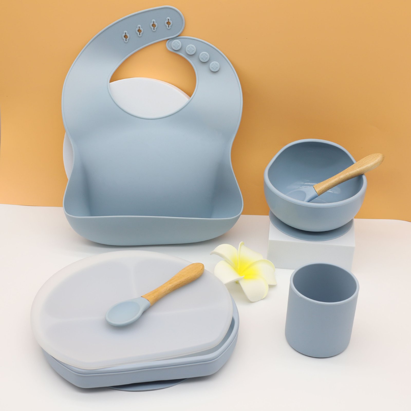 Silicone Baby Feeding Set-Suction Bowl with Spoons Forks Sippy Cup Adjustable Bib, Eating Utensils for 6+ Months