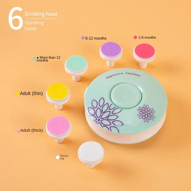 Baby Nail Trimmer With 6 Grinding Heads Baby Electric Nail Clipper Baby Care Kit Manicure Set Safe & Easy To Trim Nail Trimmers – Baby Nail Care Tools