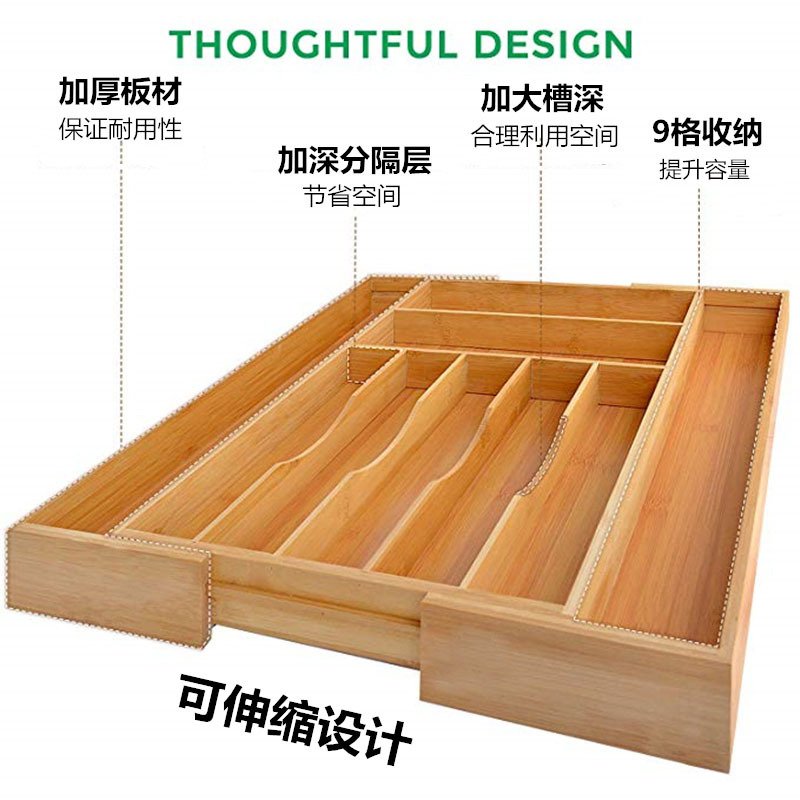 Drawer Divider Storage Box Bamboo Tableware Storage Organization Artifact Drawer Storage Box Knife And Fork Compartment Box Wooden